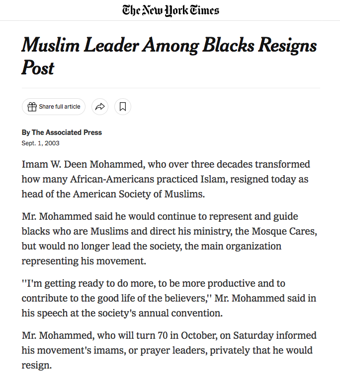 The young Wallace D. Mohammed became aware of their schemes early in his life, and in the earliest days of his leadership he exposed them as “sissies” and later in the years of his leadership, as “slave-makers.” He warned his following against them for decades and separated himself from them officially and permanently in 2003. (It is public record that he asked me to announce that separation to his following.) In that moment in 2003 I also distanced and disassociated myself from this illegitimate order, but Imam Mohammed had warned me long before that to NEVER put myself under their authority.